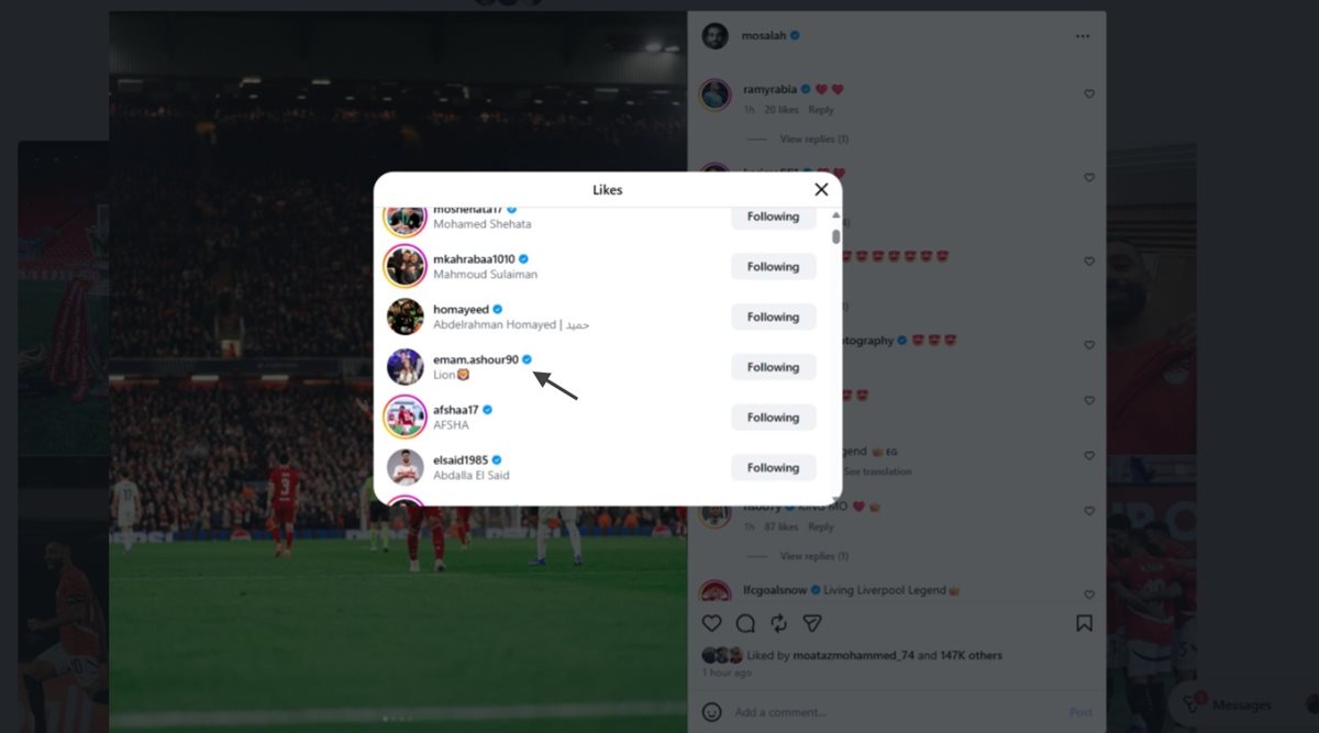 تفاعل لاعب الأهلي، إمام عاشور، مع أحدث منشورات نجم المنتخب المصري ونجم ليفربول محمد صلاح على مواقع التواصل الاجتماعي، وذلك بعد أيام من تخلفه عن السفر مع بعثة الفريق وتغريمه من قبل النادي.