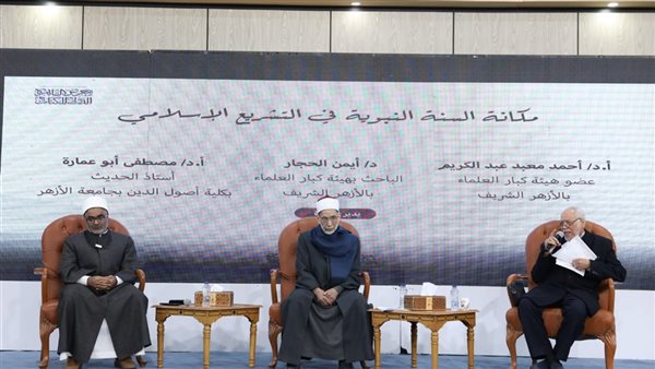 نظّم جناح الأزهر الشريف بمعرض القاهرة الدولي للكتاب ندوةً علمية بعنوان «مكانة السنة النبوية في التشريع الإسلامي»، اليوم الجمعة، بحضور الدكتور أحمد معبد عبد الكريم، عضو هيئة كبار العلماء بالأزهر الشريف، والدكتور مصطفى أبو عمارة، أستاذ الحديث بكلية أصول الدين جامعة الأزهر، وأدارها والدكتور أيمن الحجار، الباحث بهيئة كبار العلماء.