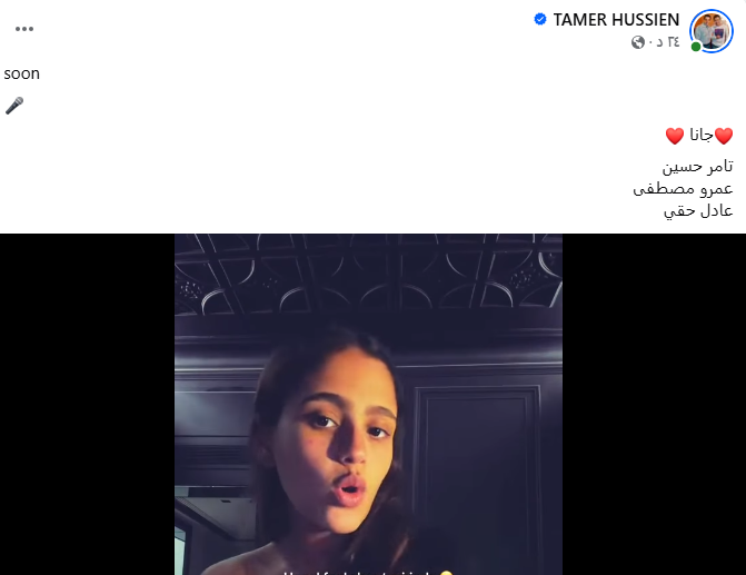 وشوّق تامر حسين متابعيه لأغنية جانا عمرو دياب الجديدة من خلال فيديو لـ جانا عبر حسابه الشخصي بموقع التواصل الاجتماعي فيس بوك، وعلق عليه: قريبًا.. جانا وتامر حسين وعمرو مصطفى وعادل حقي.
