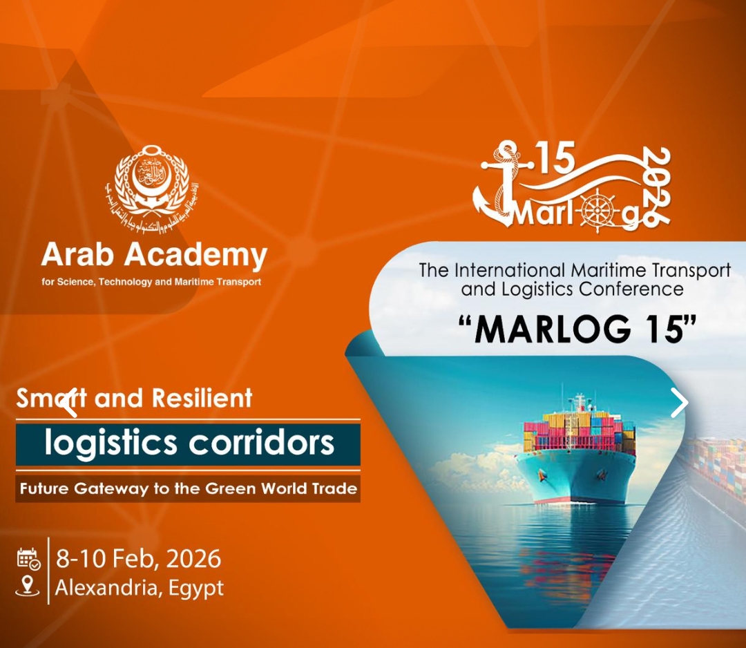 تنطلق غدًا الأحد في الإسكندرية فعاليات النسخة الـ15 من المؤتمر الدولي للنقل البحري واللوجستيات مارلوج 15، والذي تنظمه الأكاديمية العربية للعلوم والتكنولوجيا والنقل البحري -معهد تدريب الموانىء - تحت عنوان: الممرات اللوجستية الذكية والمرنة: بوابة المستقبل للتجارة العالمية الخضراء، تحت رعاية أحمد أبو الغيط، الأمين العام لجامعة الدول العربية، والفريق مهندس كامل الوزير، نائب رئيس مجلس الوزراء للتنمية الصناعية ووزير الصناعة والنقل.