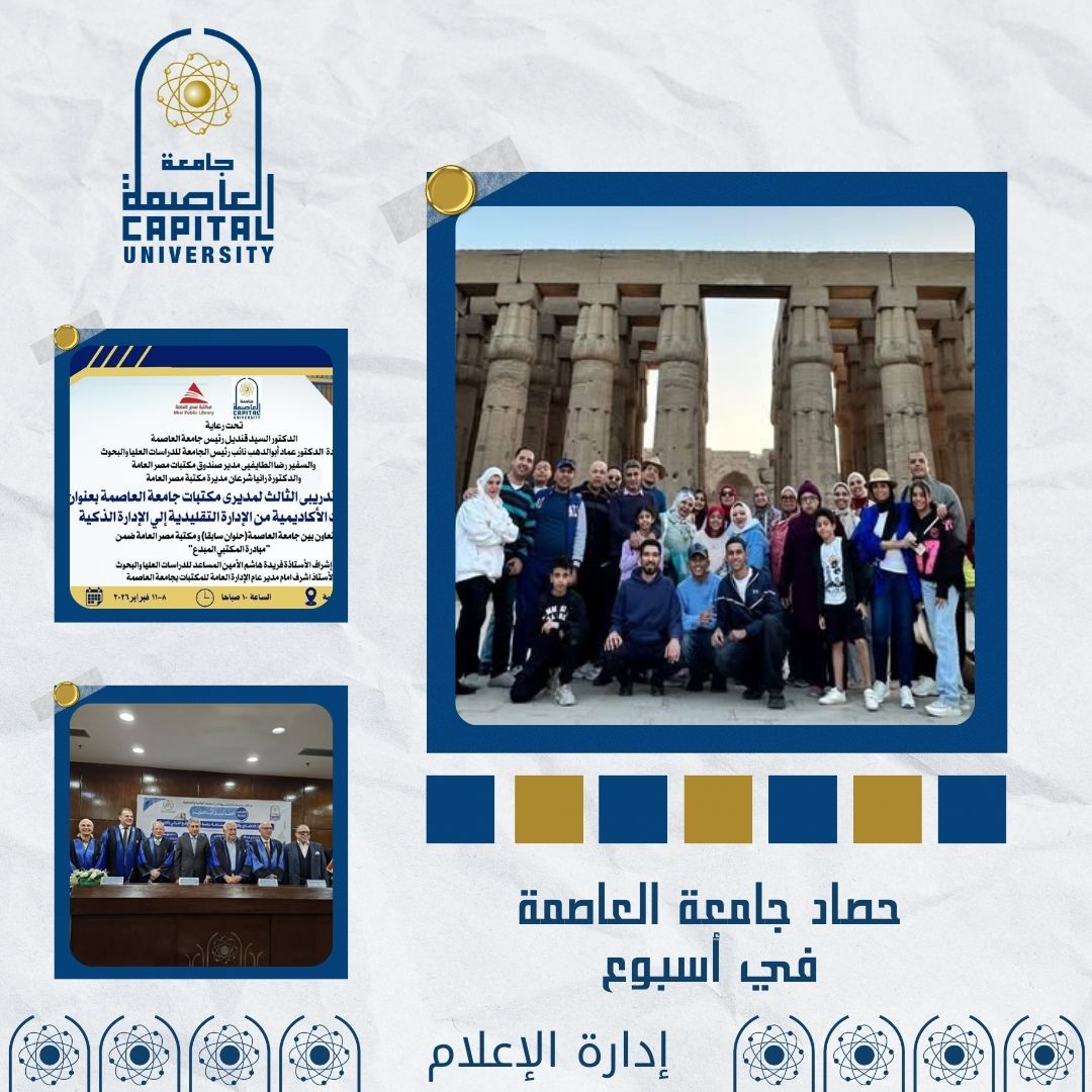 - الجامعة فتحت أبوابها لفصل دراسي جديد وسط استعدادات متميزة، كما نظمت رحلة للعاملين إلى الأقصر وأسوان لتعزيز الوعي السياحي والثقافي.