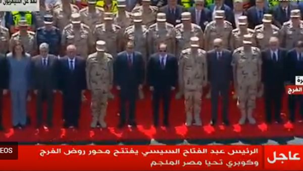 التقط الرئيس السيسي صورة تذكارية مع العاملين بـ محور روض الفرج وكوبري تحيا مصر الملجم، عقب افتتاحهما منذ قليل.