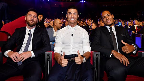 ونافس فان دايك، الثنائي ليونيل ميسي وكريستيانو رونالدو على جائزة أفضل لاعب في أوروبا. وقال رونالدو قبل الإعلان عن فوز فان دايك خلال حفل جوائز الأفضل فى أوروبا: “هل حدث وأن شاهدتم ثنائي يواصل الحضور في الجوائز لمدة 15 عام، هذا لم يحدث من قبل”. وأضاف النجم البرتغالي : “علاقتي مع ميسي جيدة، أنا لم أتناول العشاء بعد معه ولكن هذا سيحدث قريباً. ومازح رونالدو النجم الأرجنتيتي ليونيل ميسي: “هو أصغر مني بسنتين ولكن أنا ما زلت وسيماً وشاباً وسأتواجد هنا مرات أخرى”.وعلق البرغوث الأرجنتيني ليونيل ميسي عليه قائلاً : “تواجد رونالدو في ريال مدريد كان يجعل المنافسة قوية للغاية بيننا فى الدوري الإسباني”.Ronaldo: “We’ve not had dinner together yet, but I hope in the future!” ?@Cristiano & Messi at the #UCLdraw ?? pic.twitter.com/KOFY8680tU