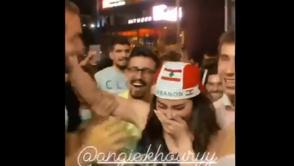 الشباب اللبناني يحمل إنجي خوري في التظاهرات.. والفنانة: “مجانين” (فيديو)