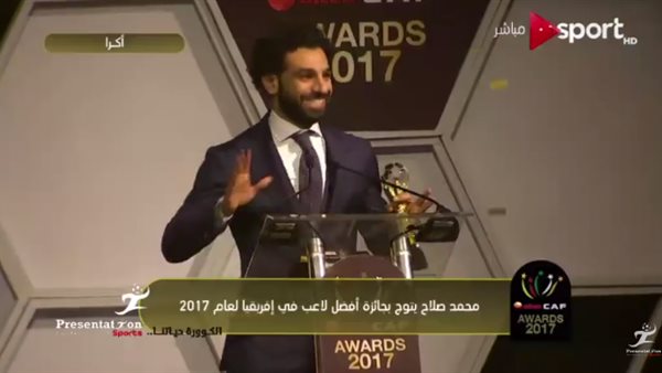 وأضاف صلاح خلال كلمته بعد فوزه بجائزة أفضل لاعب أفريقى لعام 2017، أن الجائزة أنجاز كبير له وهى لحظة خاصة له فى تاريخه المهنى، مؤكداً أنه يهدى الجائزة لكل أطفال أفريقيا، قائلا:” لا تتوقفوا على الحلم وعن التصديق”.