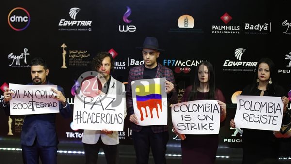 وظهر أبطال الفيلم، على الـ”ريد كاربت” الخاص به، رافعين لافتات عليها “كولومبيا تنزف”، تضامنًا مع الشعب الكولومبي.