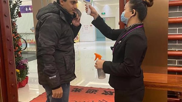 وأشار أحمد، إلى أن اللجان الطبية في كل مكان في الصين، حيث يتم قياس درجة الحرارة عن طريق أجهزة مخصصة للتعرف على ما إذا كان الشخص مصاب من عدمه، مع التأكيد على الجميع ارتداء الماسك المخصص للوقاية.
