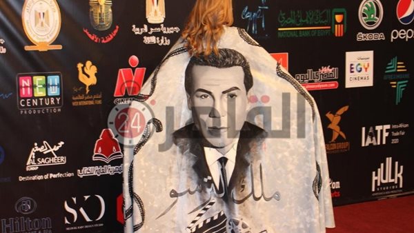 رانيا فريد شوقي في افتتاح مهرجان الأقصر بفستان مطبوع عليه صورة والدها (صور)
