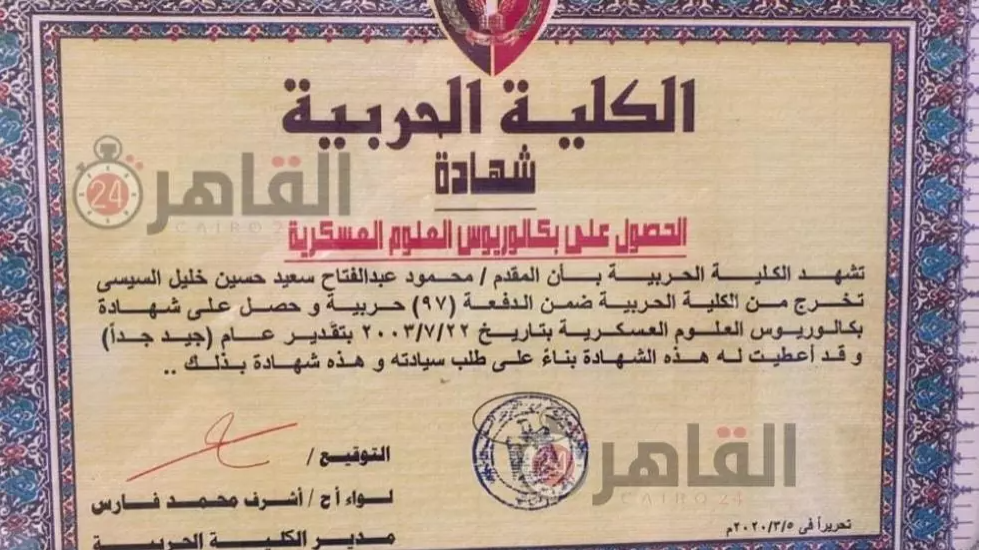 شهادة تخرج محمود السيسي