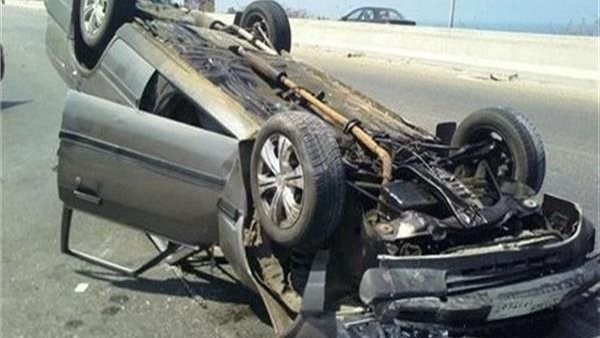 بسبب السرعة الزائدة.. انقلاب سيارة من أعلى كوبري بالإسماعيلية