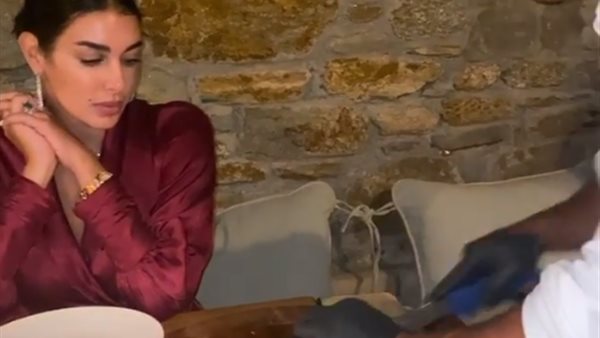 ياسمين صبري تتناول الطعام من يد شيف أثناء عطلتها الصيفية (فيديو)