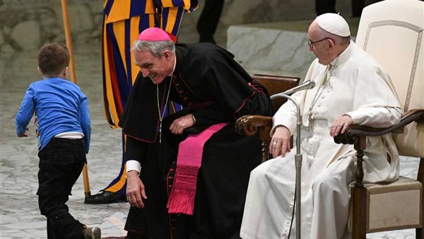 طفل يداعب بابا الفاتيكان خلال العظة الأسبوعية