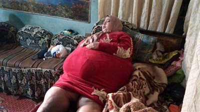 "والله مابعرف أنام ولا أدخل الحمام".. مريضة وزنها 350 كيلو بالمنوفية تناشد السيسي لعلاجها (فيديو)